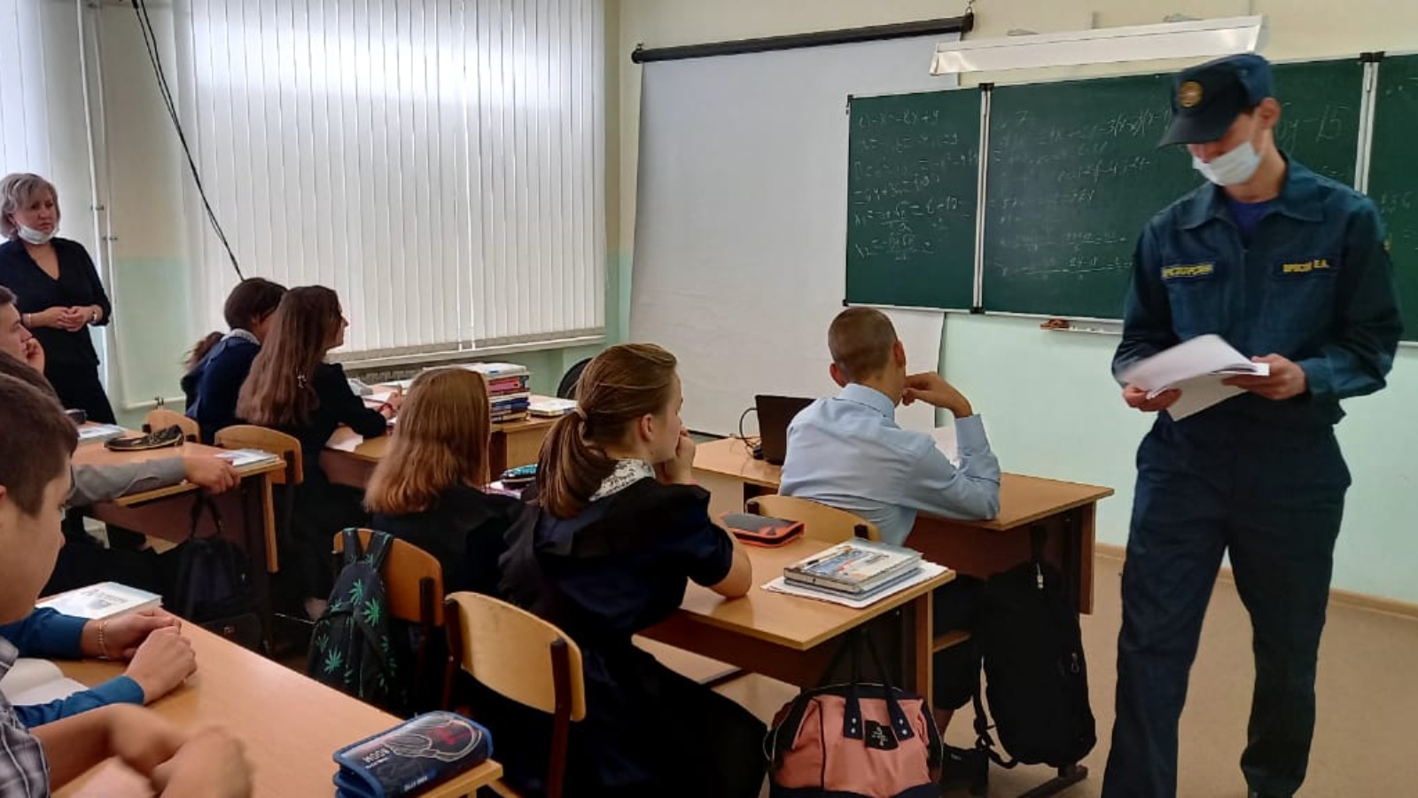 В ходе урока школьникам напомнили меры пожарной безопасности, разъяснили порядок действий в случае возникновения пожара, вручили памятки на противопожарную тематику.