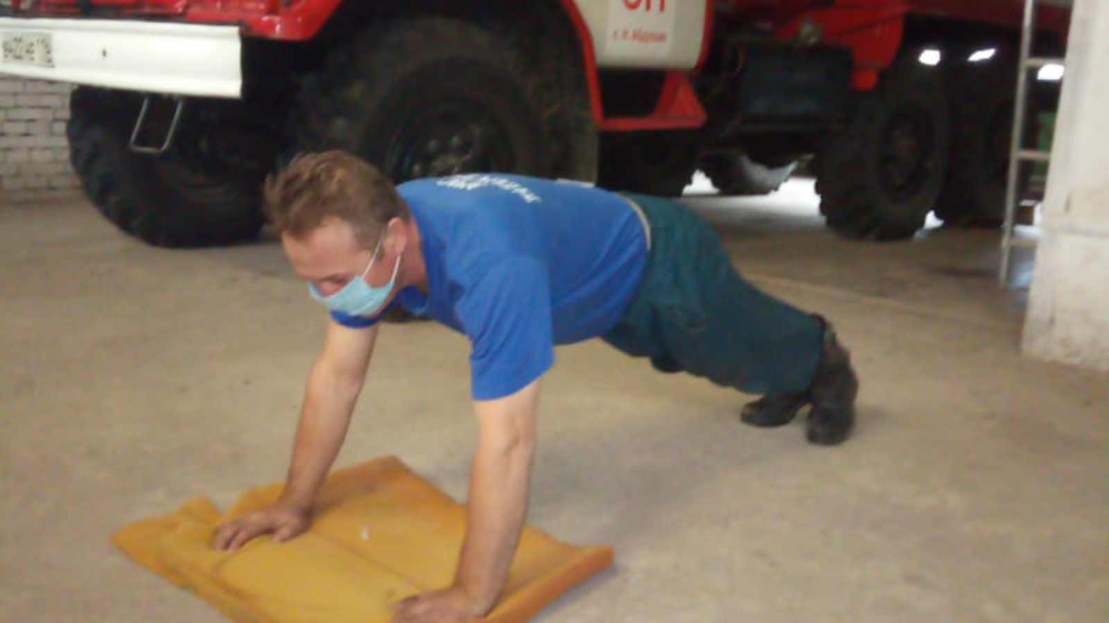 Так, в отдельном посту по охране села Нижнее Абдулово Альметьевского отряда противопожарной службы Республики Татарстан проведено занятие по отжиманию на руках в упоре лежа.