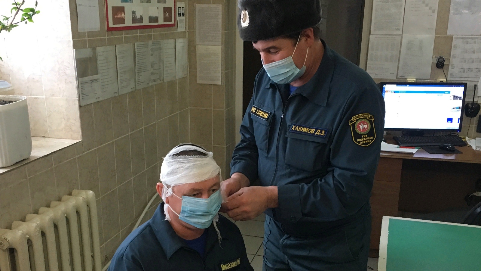 Так, в отдельном посту по охране с. Чулпаново Нижнекамского отряда противопожарной службы Республики Татарстан согласно расписания проведено занятие по оказанию первой помощи «Наложение первичной повязки на голову».