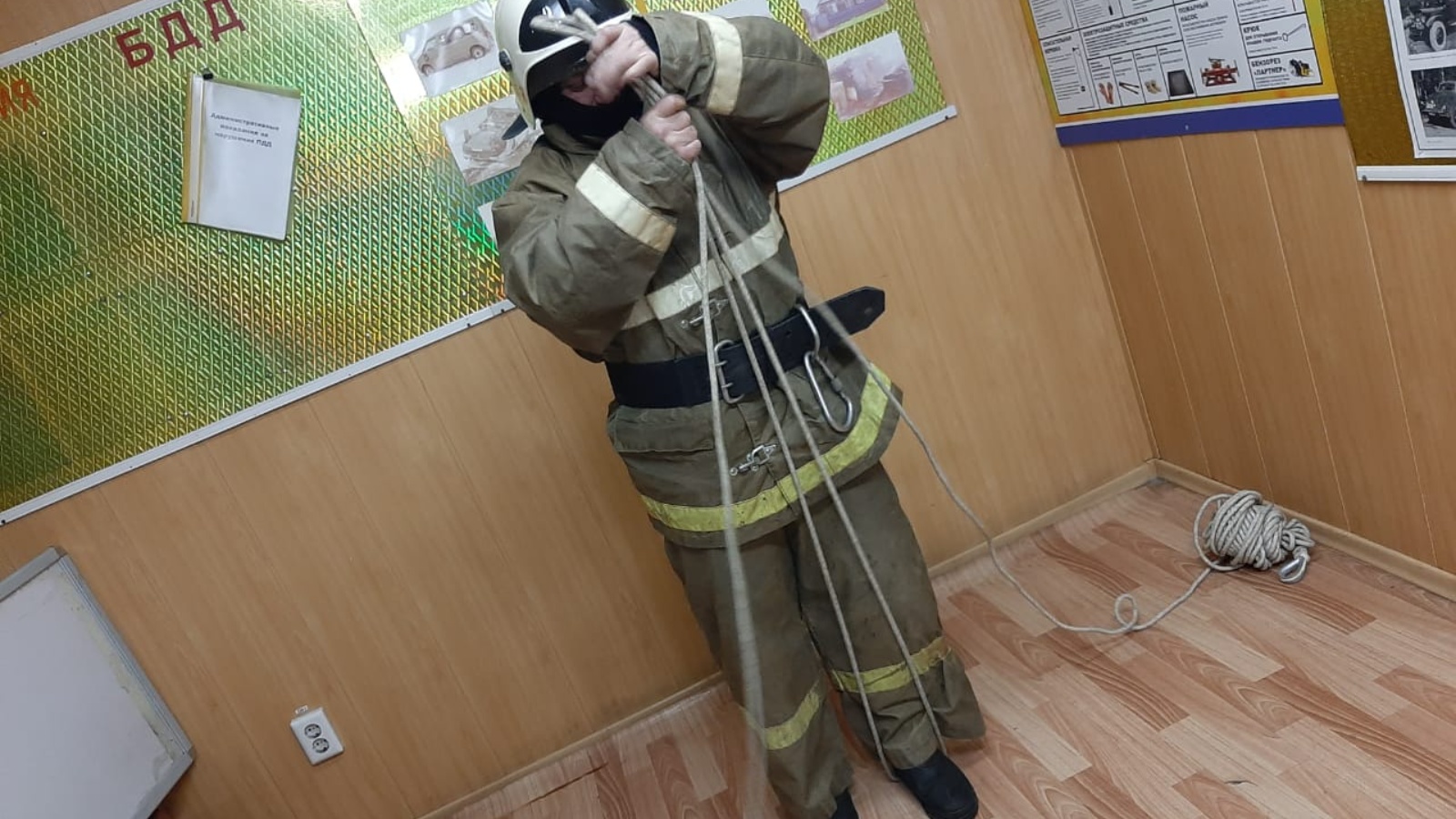 Работниками отдельного поста по охране д. Ялкын Чистопольского отряда противопожарной службы Республики Татарстан отработан норматива №4.1 «Вязка двойной спасательной петли, без надевания ее на пострадавшего».