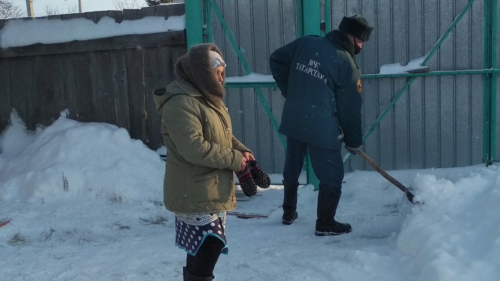 В рамках оказания посильной помощи одиноким престарелым людям и инвалидам работниками отдельного поста по охране с. Большие Нырси Сабинского отряда противопожарной службы Республики Татарстан проведена очистка снега на территории домохозяйства одинокой престарелой жительницы-инвалида 2 категории с. Большие Нырси Тюлячинского муниципального района Республики Татарстан.