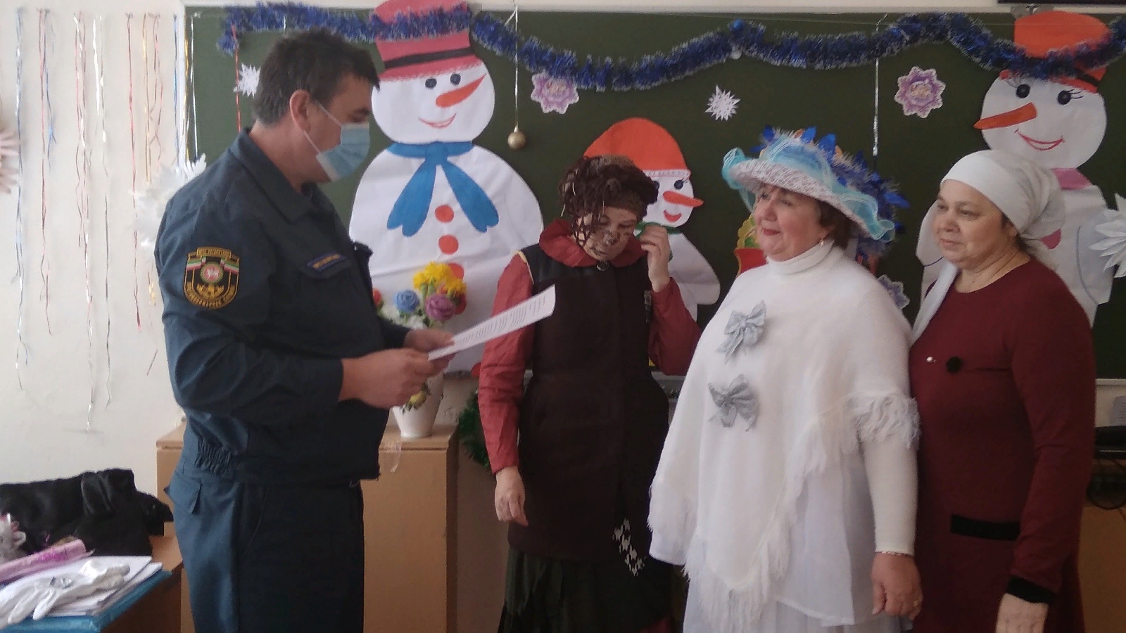 Перед началом Новогоднего утренника начальником отдельного поста по охране с. Корноухово Чистопольского отряда противопожарной службы Республики Татарстан Колчановым В.В. с работниками МБДОУ «Теремок» с. Корноухово Рыбно-Слободского муниципального района Республики Татарстан проведена беседа, о мерах пожарной безопасности, порядок действия в случае возникновения пожара, о недопущении использования пиротехнических изделий (хлопушек, фейерверков, бенгальских огней и петард), во время проведения праздника с вручением информационных памяток на противопожарную тематику.