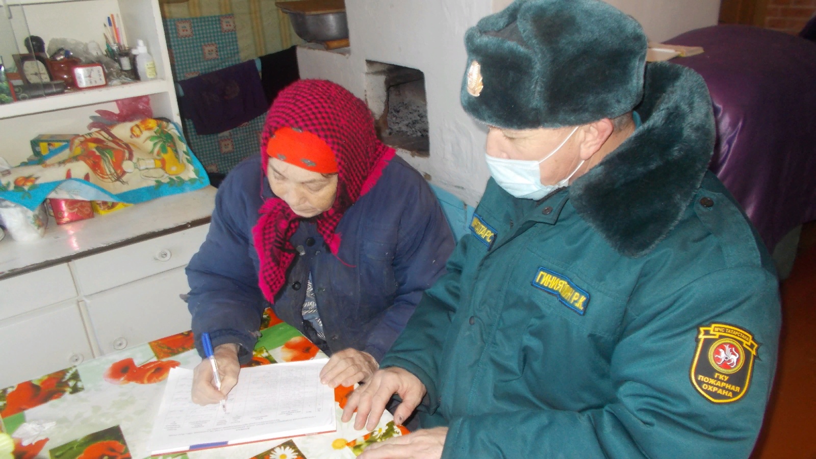 В первоочередном порядке осуществляются беседы о мерах пожарной безопасности с одинокими престарелыми гражданами, многодетными семьямии неблагополучными гражданами. По состоянию на 11 января 2022 года с начала годапроведены беседы в 105 домовладенияхнаселенных пунктов Иске-Рязап, Чечекле и Йолдыз Спасского муниципального района Республики Татарстан.