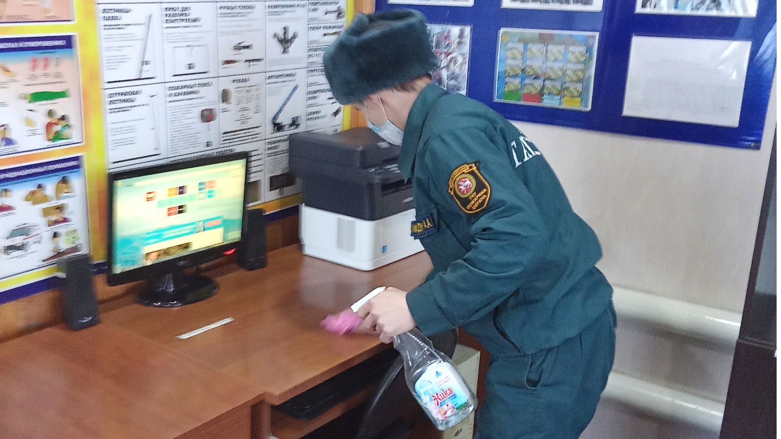 В целях недопущения распространения коронавирусной инфекции (COVID-19)работниками отдельного поста по охране с. Старая Икшурма Сабинского отряда противопожарной службы Республики Татарстансистематическипроводится влажная уборка помещений и дезинфекция рабочих поверхностей.