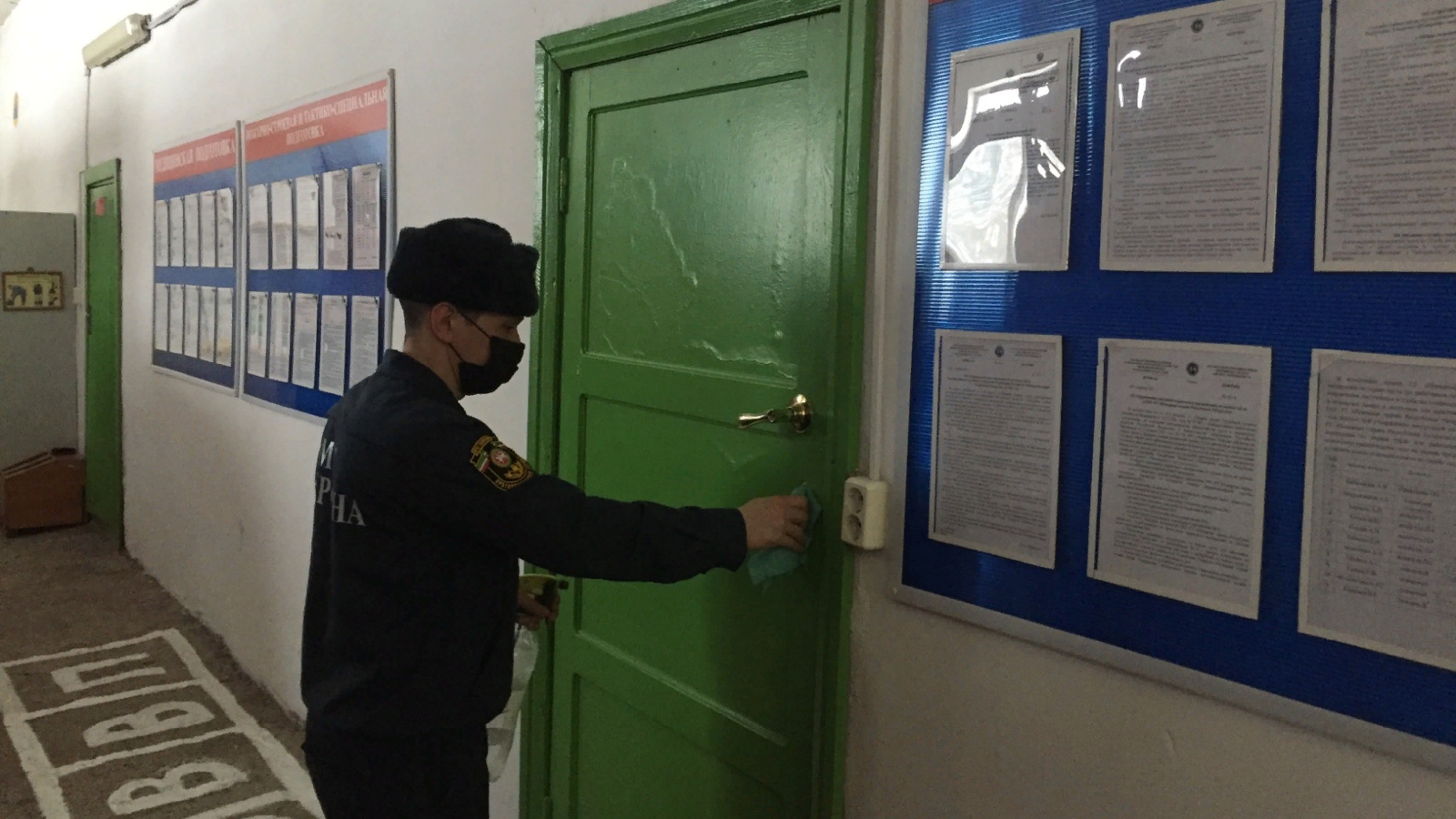 Так, работниками отдельного поста проведены мероприятия по обработке рабочих поверхностей, дезинфекции помещений и гаража отдельного поста.