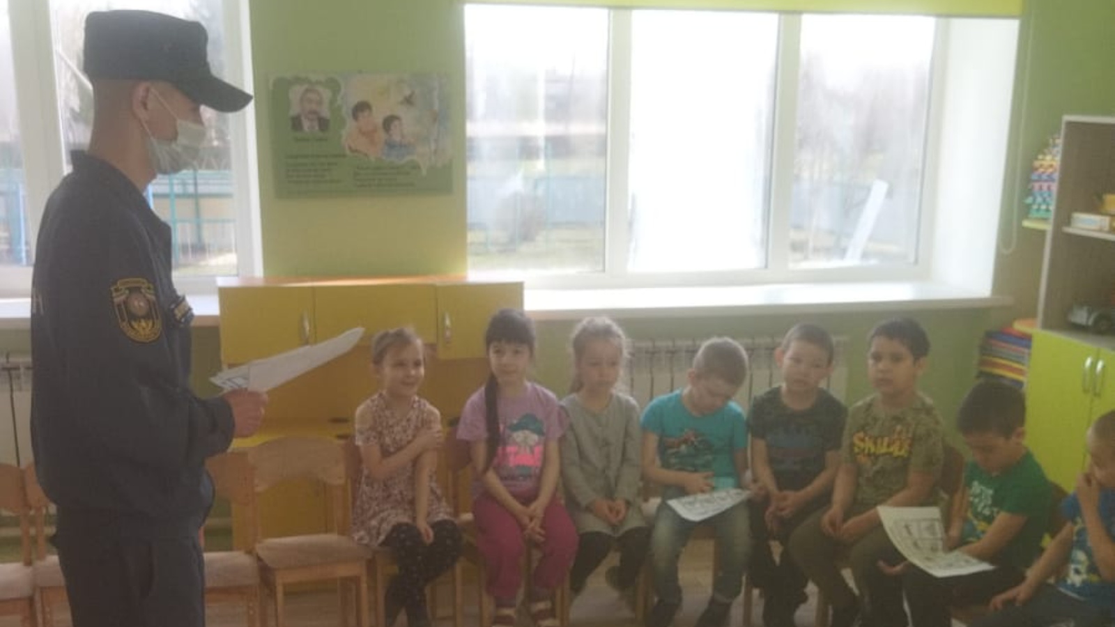 Воспитанникам в доступной для детского восприятия форме рассказали о причинах возникновения пожара, объяснили, что ни в коем случае нельзя играть со спичками, электрическими приборами, а в случае пожара нужно под руководством взрослых быстро и организованно покинуть здание.