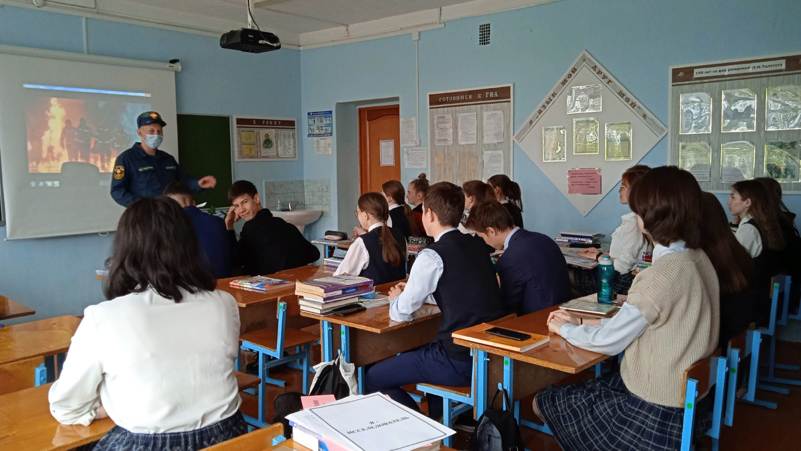 В ходе урока школьникам напомнили меры пожарной безопасности, разъяснили порядок действий в случае возникновения пожара, вручили памятки на противопожарную тематику.