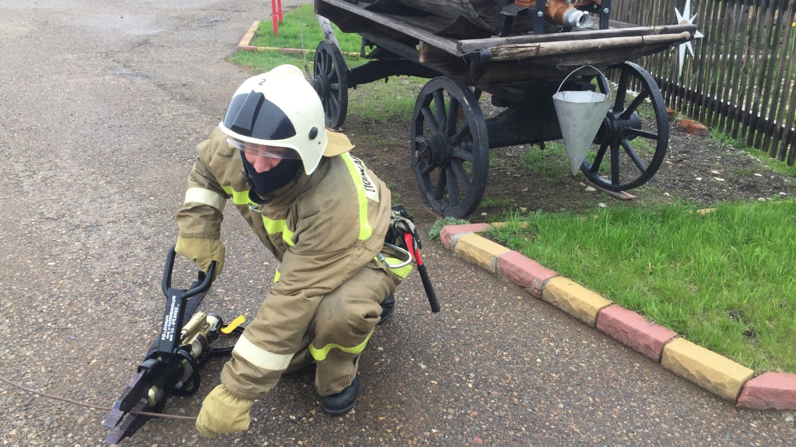 В целях повышения боеготовности работников отдельного поста по охране с. Соколка Сабинского отряда противопожарной службы Республики Татарстан к поставленным боевым задачам, согласно расписания занятий в мае месяце, проведено практическое занятие по отработке норматива № 2.7.1 «Подготовка к работе ГАСИ и перекусывание арматуры с помощью разжим – кусачек».