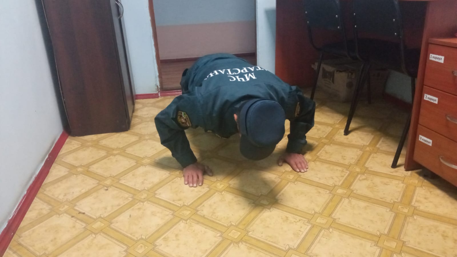 Так, в отдельном посту по охране села Салманы Чистопольского отряда противопожарной службы Республики Татарстан проведено занятие по отжиманию на руках в упоре лежа.