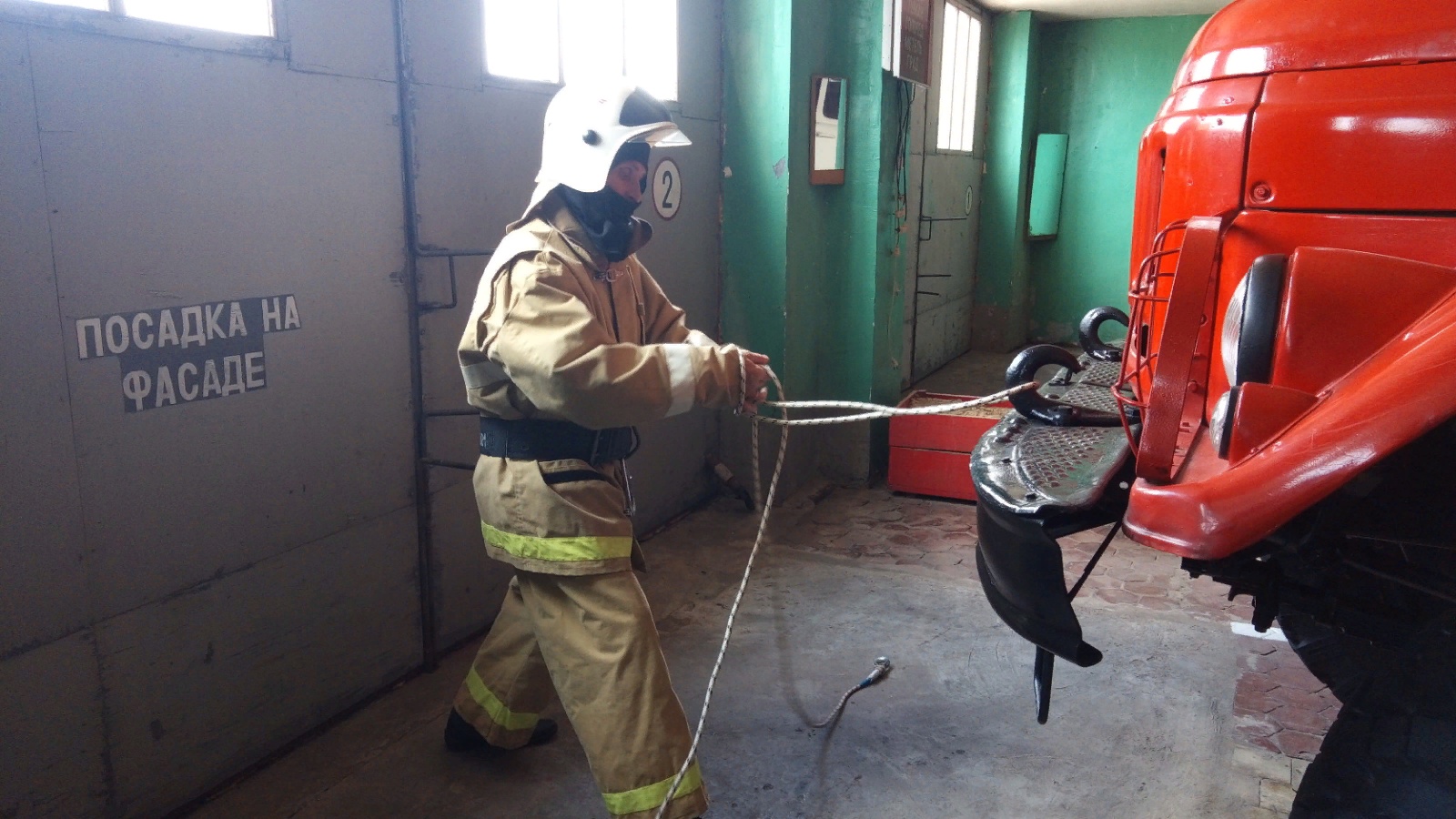 В целях совершенствования навыков работников противопожарной службы Республики Татарстан при тушении пожаров и проведении аварийно-спасательных работ с личным составом дежурной смены отдельного поста по охране села Юхмачи Чистопольского отряда противопожарной службы Республики Татарстан проведено практическое занятие по отработке норматива № 4.3 «Закрепление спасательной веревки за конструкцию здания».
