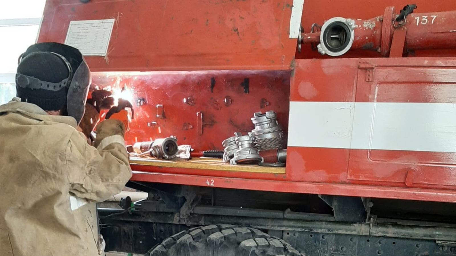 С целью предупреждения отказов, износа деталей и своевременного устранения повреждений работниками отдельного поста по охране с. Ютаза Альметьевского отряда противопожарной службы Республики Татарстан проведено техническое обслуживание пожарного автомобиля, а также работы по усовершенствованию креплений пожарно-технического вооружения в отсеках пожарных автомобилей.