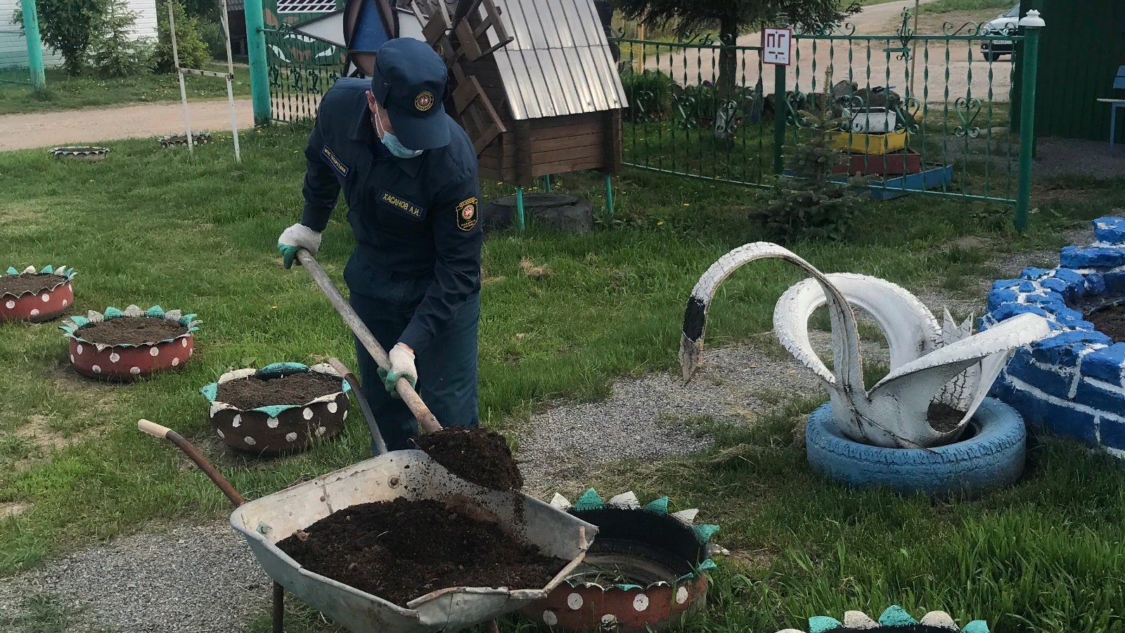 В целях озеленения территории и благоустройства отдельного поста, работниками отдельного поста по охране с. Старая Икшурма Сабинского отряда противопожарной службы Республики Татарстан были заполнены клумбы землей для посадки цветов.