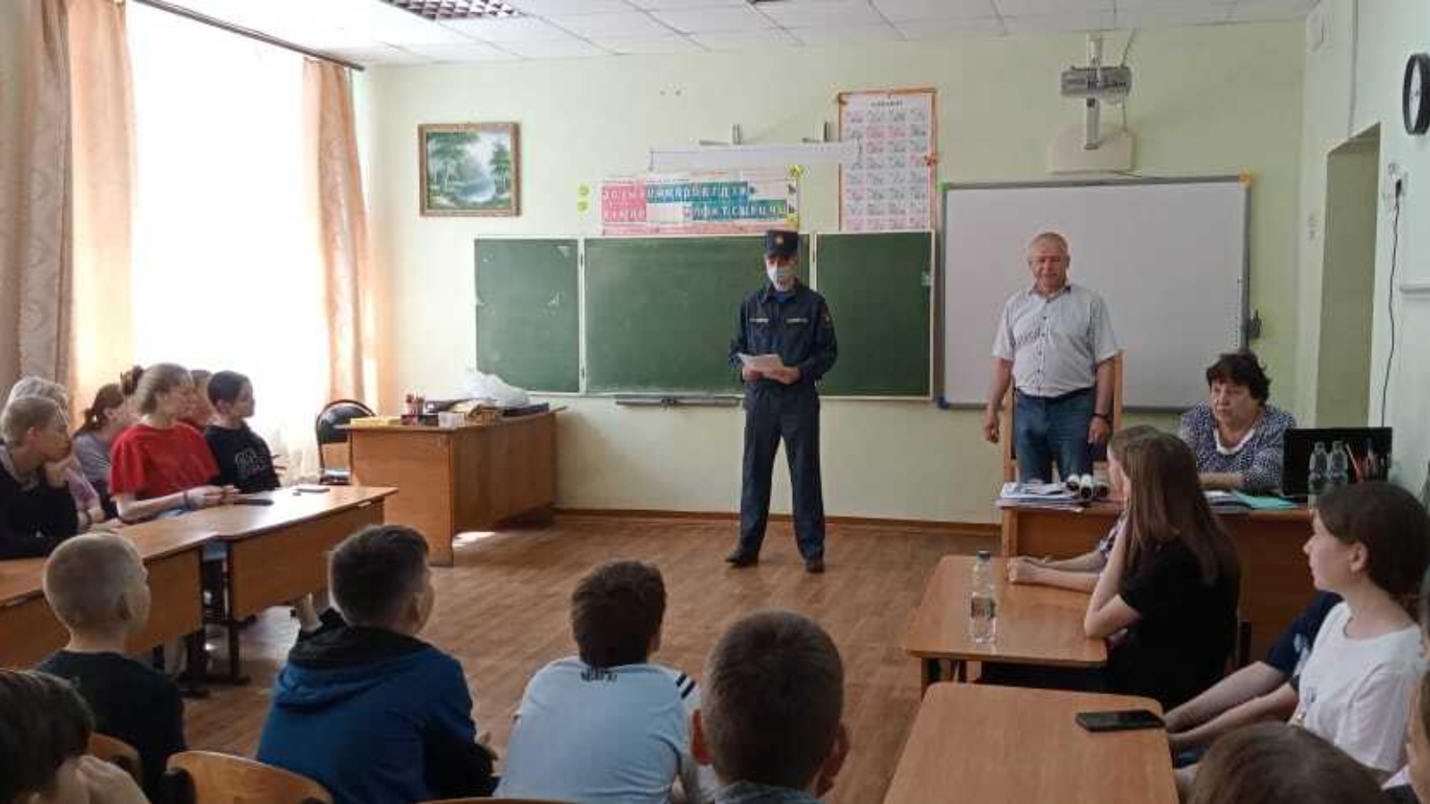 В ходе данного мероприятия с детьми проведена беседа по соблюдению требований пожарной безопасности в школе, в быту, разъяснены действия в случае возникновения пожара и чрезвычайных ситуаций.