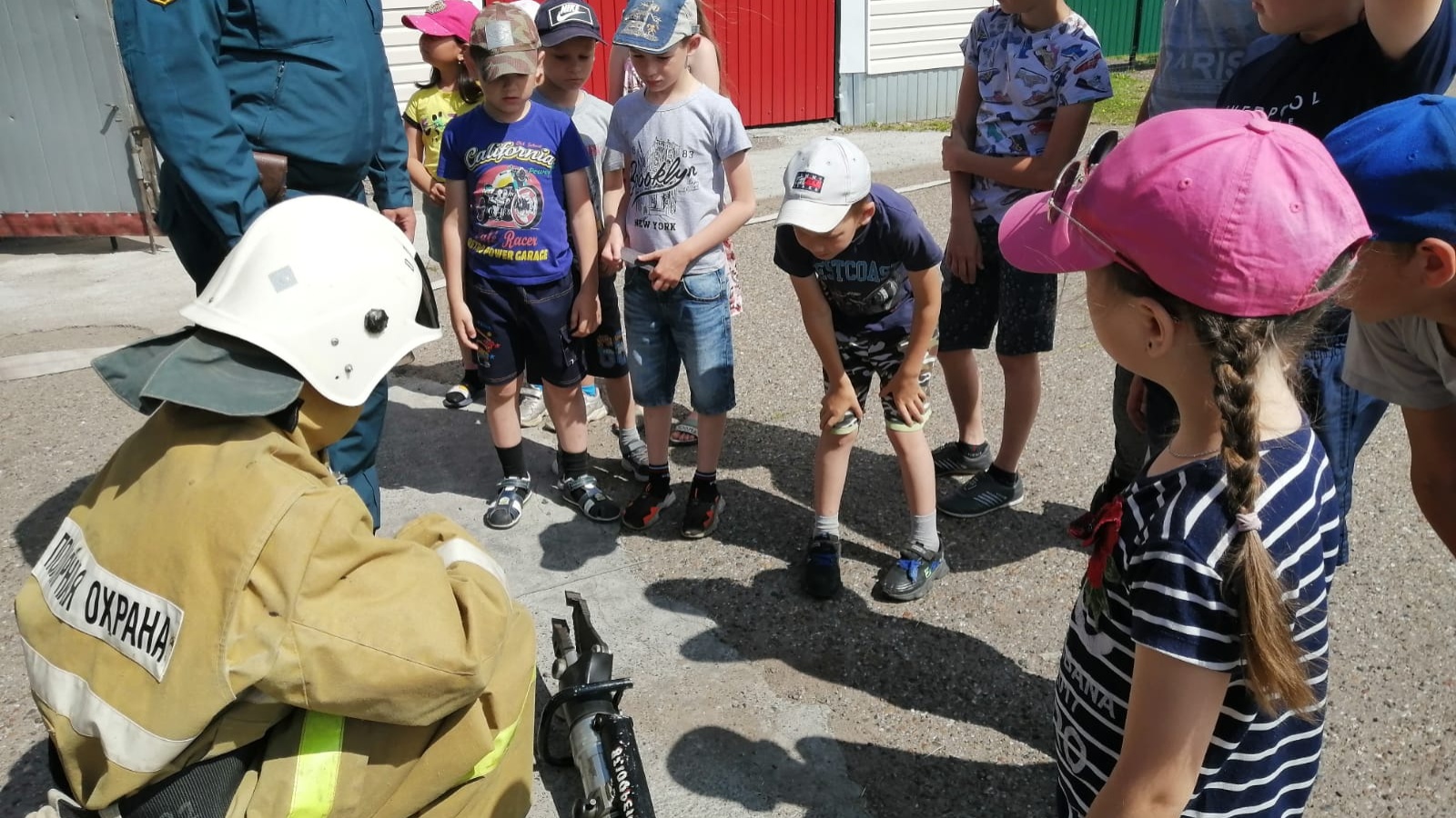 С детьми в доступной форме проведена профилактическая беседа на противопожарную тему и продемонстрированы пожарно-техническое вооружение, аварийно-спасательные инструменты и пожарная техника.
