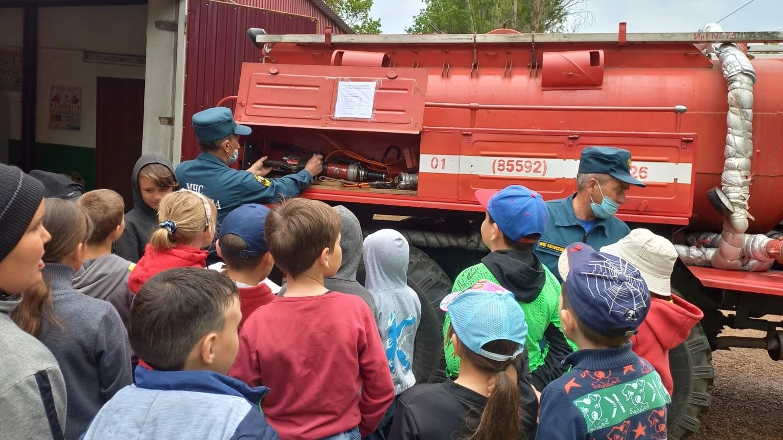 С детьми в доступной форме проведена профилактическая беседа на противопожарную тему и продемонстрированы пожарно-техническое вооружение, аварийно-спасательные инструменты, пожарная техника, ребятам. В заключение напомнили требования пожарной безопасности, а также вручили памятки на противопожарную тематику.