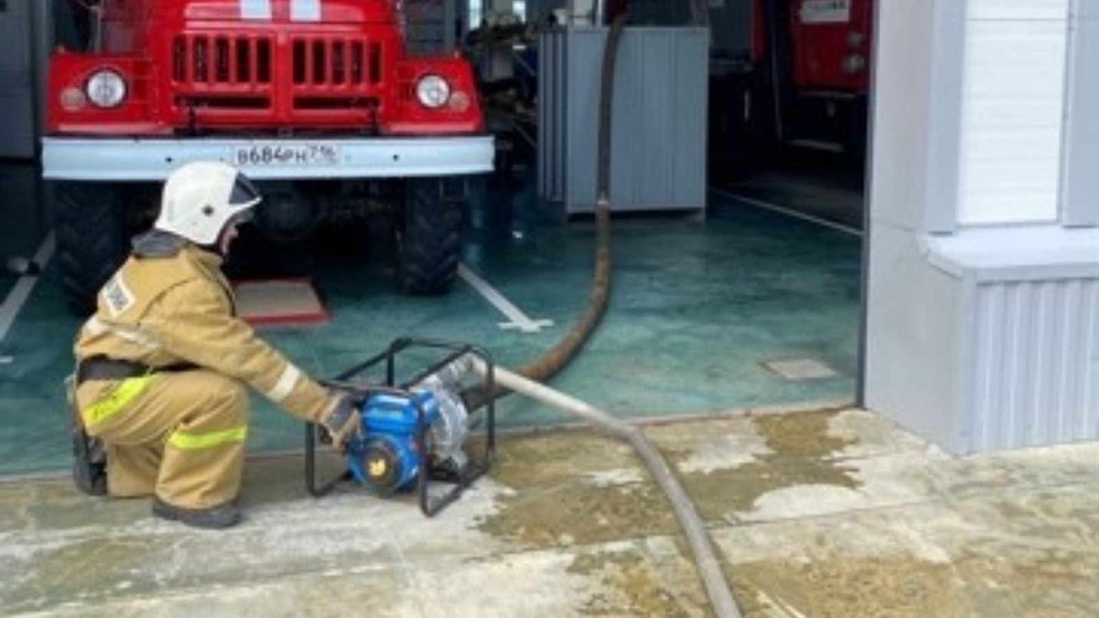 Так работниками отдельного поста по охране села Сюкеево Апастовского отряда противопожарной службы Республики Татарстан проведена отработка норматива по пожарно-строевой подготовке № 7.6 «Установка мотопомпы на водоем».