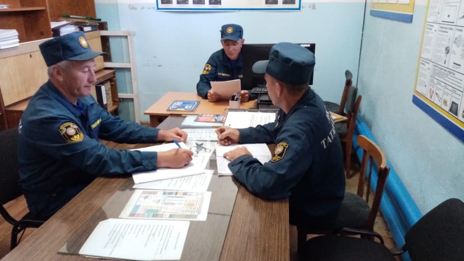 Согласно расписанию занятий, в целях приобретения личным составом подразделения и совершенствования навыков ведения действий при пожарах и проведении АСР, подготовки личного состава к умелым и слаженным действиям в составе пожарного, аварийно-спасательного расчета 3-ей дежурной сменой отдельного поста по охране села Кичкальня Нижнекамского отряда противопожарной службы Республики Татарстан проводятся классно-групповые занятия.