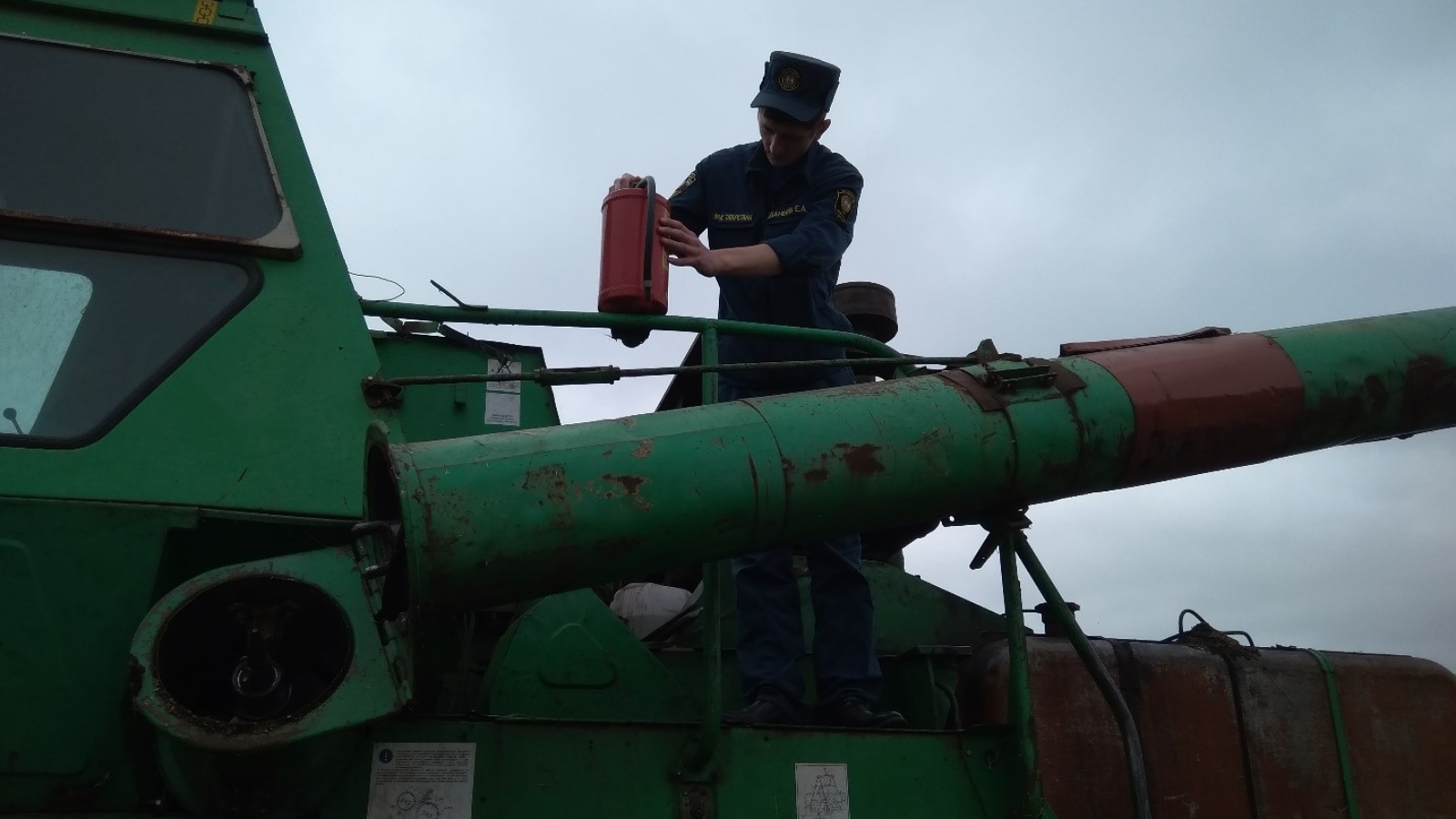 В ходе беседы разъяснили работникам сельского хозяйства о правилах соблюдения противопожарного режима в период уборки урожая зерновых и заготовки грубых кормов, раздали работникам сельхозпроизводства памятки и объяснили порядок действий в случае возгорания зерноуборочной техники, хлебных массивов и скирд.