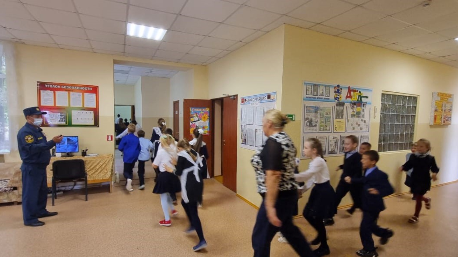 После срабатывания системы звукового оповещения дети под руководством персонала организованно покинули здание школы. После сбора в установленном месте, всех проверили по списку – все на месте.