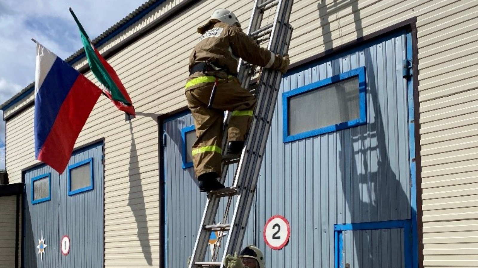 С целью совершенствования навыков, используемых в условиях выполнения оперативно-тактических действий на пожаре, отработки приемов использования штатного пожарного и аварийно-спасательного оборудования, с личным составом отдельного поста по охране села Нижний Таканыш Сабинского отряда противопожарной службы Республики Татарстан проведено выполнение подъема по установленной пожарной выдвижной трехколенной лестнице.