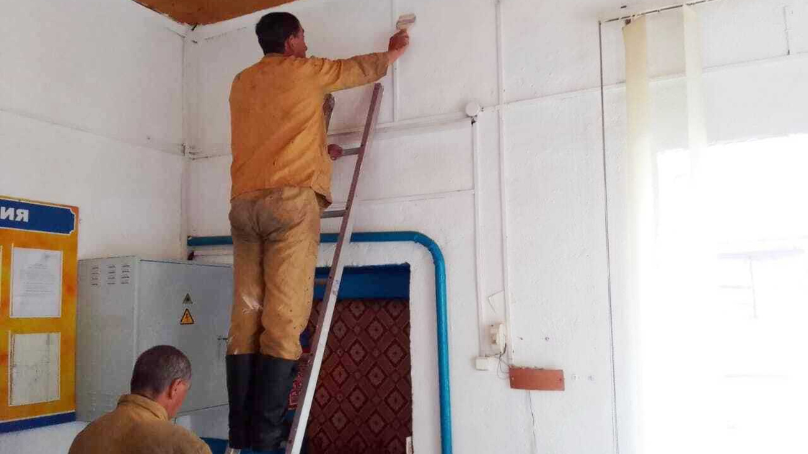 В целях облагораживания рабочего места работниками отдельного поста по охране с. Альмендерово Апастовского отряда противопожарной службы, свободными от несения службы, проведена работа по побелке и покраске, комнаты приема пищи и котельной подразделения.