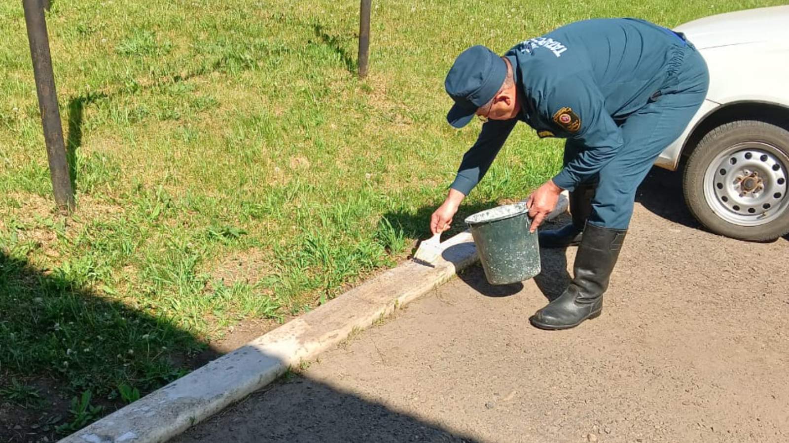 В целях благоустройства территории и поддержания должного порядка, работниками отдельного поста по охране села Лашманка Нижнекамского отряда противопожарной службы Республики Татарстан организована покраска бордюров на прилегающей территории.