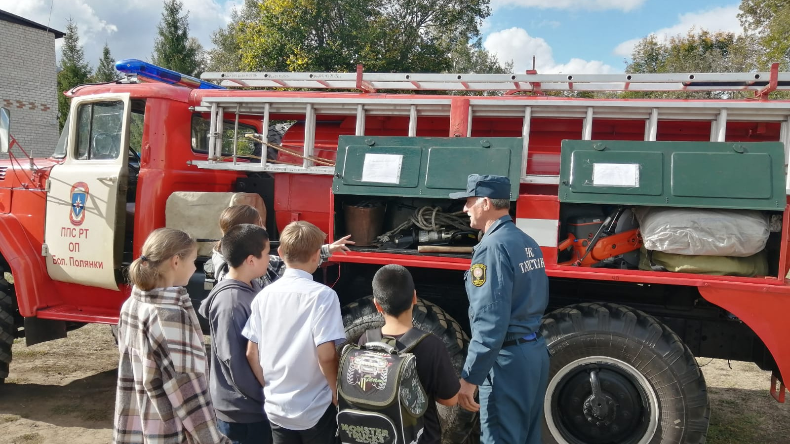 С целью популяризации профессии пожарного, работниками отдельного поста по охране села Большие Полянки противопожарной службы Республики Татарстан проведен показ пожарной техники для учеников Большеполянской средней общеобразовательной школы Алексеевского муниципального района Республики Татарстан.