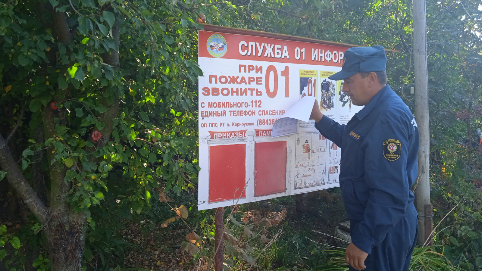 В целях повышения роли наглядной агитации по пропаганде мер пожарной безопасности, а также с целью донесения до граждан необходимой информации о требованиях пожарной безопасности, работниками отдельного поста по охране села Корноухово противопожарной службы Республики Татарстан созданы стенды «Служба 01».