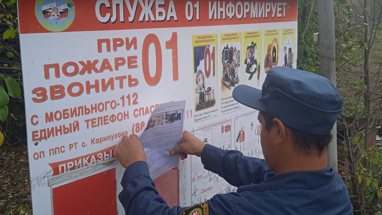 В целях пропаганды мер пожарной безопасности среди населения, работники отдельного поста по охране села Корноухово противопожарной службы Республики Татарстан обновили информацию на стенде «Служба-01».