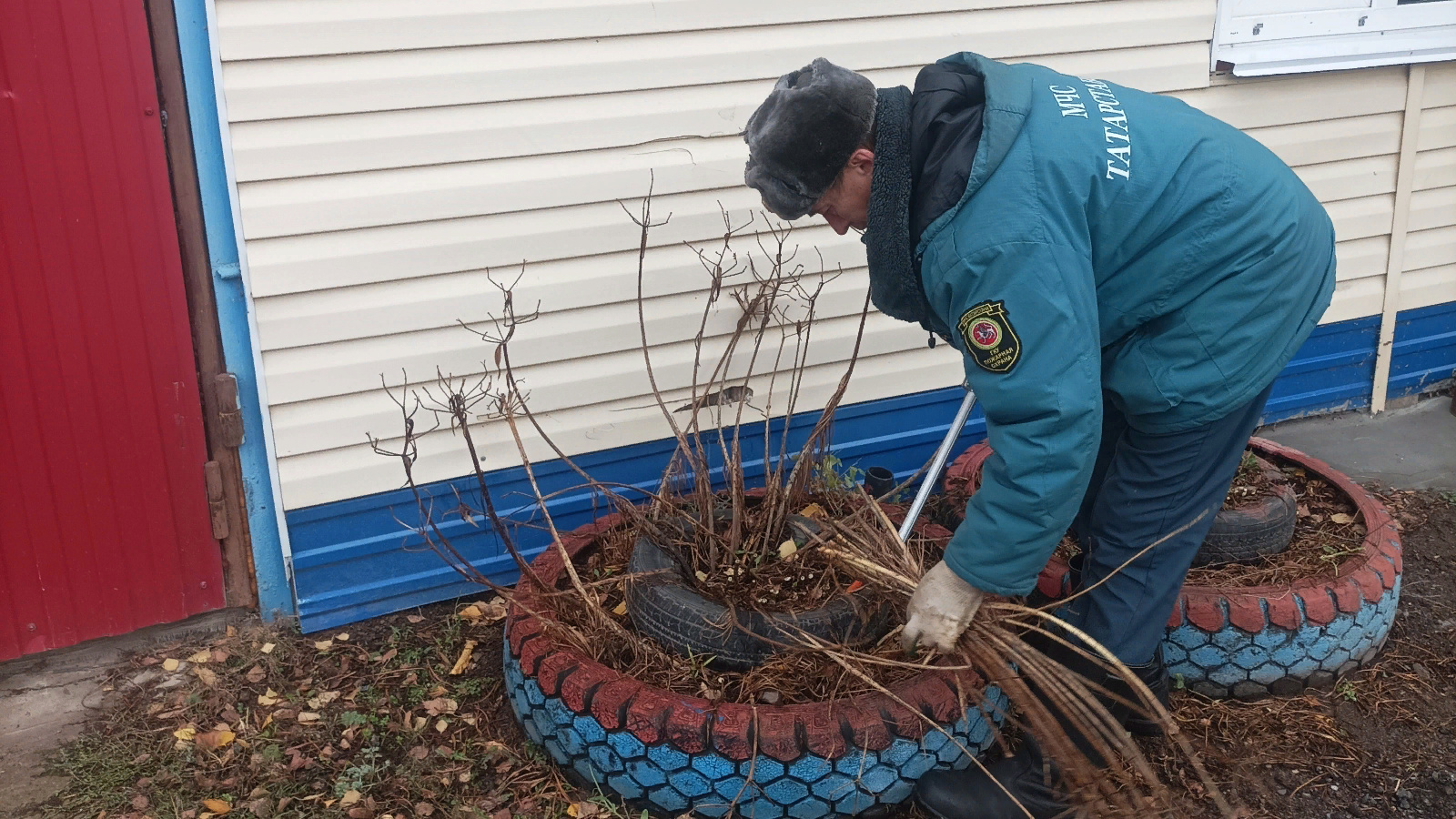 В целях благоустройства территории отдельного поста, а также прилегающей к нему территории, работниками противопожарной службы по охране села Омары противопожарной службы Республики Татарстан проведена уборка территории от опавшей листвы и старых цветов, а также посадили кусты рябины.
