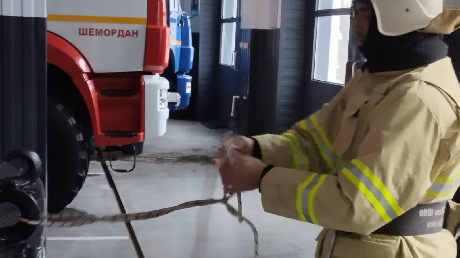 С целью доведения до необходимой степени совершенства профессионально-прикладных умений и навыков работы с пожарно-техническим оборудованием в условиях тушения пожаров и проведения аварийно-спасательных работ, работниками отдельного поста по охране села Шемордан противопожарной службы Республики Татарстан отработан норматив по самоспасанию с помощью пожарной спасательной верёвки и карабина.