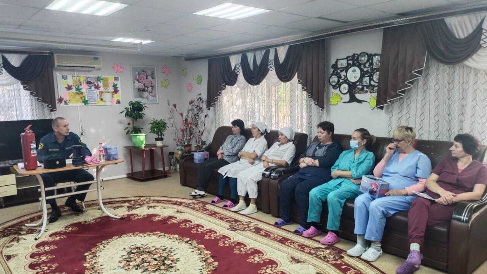 В ходе профилактической беседы персоналу и подопечным дома-интерната рассказали о мерах пожарной безопасности в учреждениях с ночным пребыванием людей, действиях персонала на случай возникновения пожаров и о правилах использования первичных средств пожаротушения.