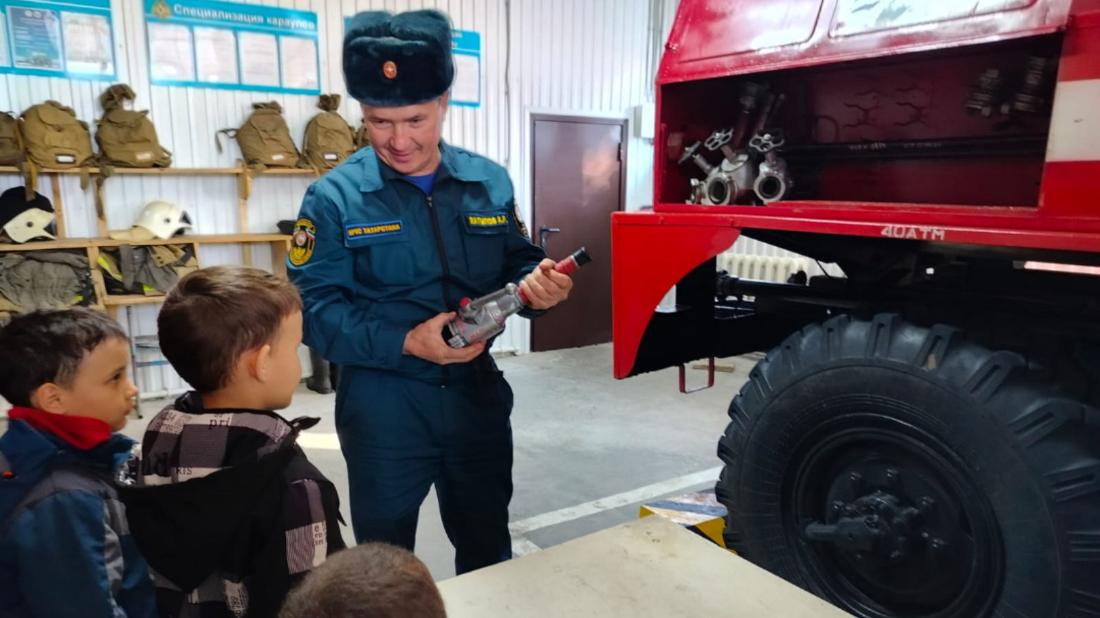 Детям рассказали историю пожарной охраны, провели экскурсию по пожарному депо. Также, ребятам продемонстрировали боевую одежду пожарного, показали пожарно-техническое вооружение, какие средства пожаротушения используются для ликвидации огня и с помощью каких инструментов проводят аварийно-спасательные работы.