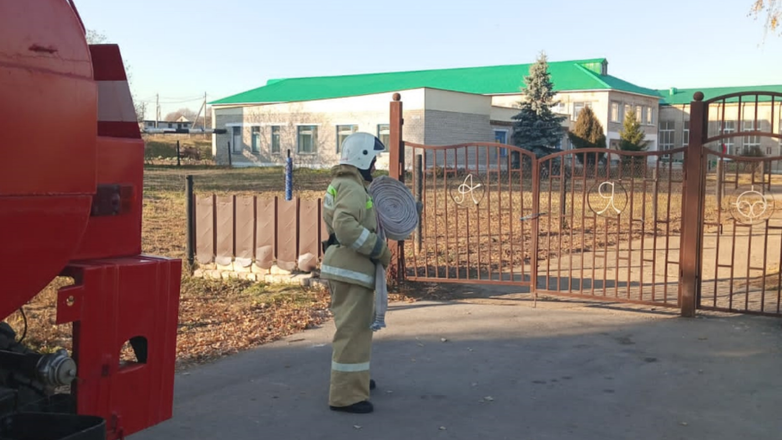 В ходе занятия проведено боевое развертывание, отработаны способы тушения пожара, изучены конструктивные особенности здания и источники противопожарного водоснабжения.