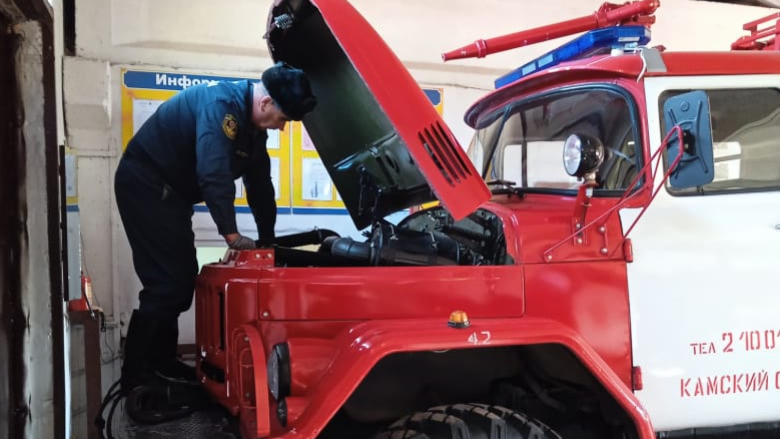 Работники отдельного поста по охране села Камский Леспромхоз Сабинского отряда противопожарной службы Республики Татарстан ежедневно проводят мероприятия по техническому обслуживанию пожарного автомобиля и пожарно-технического вооружения.
