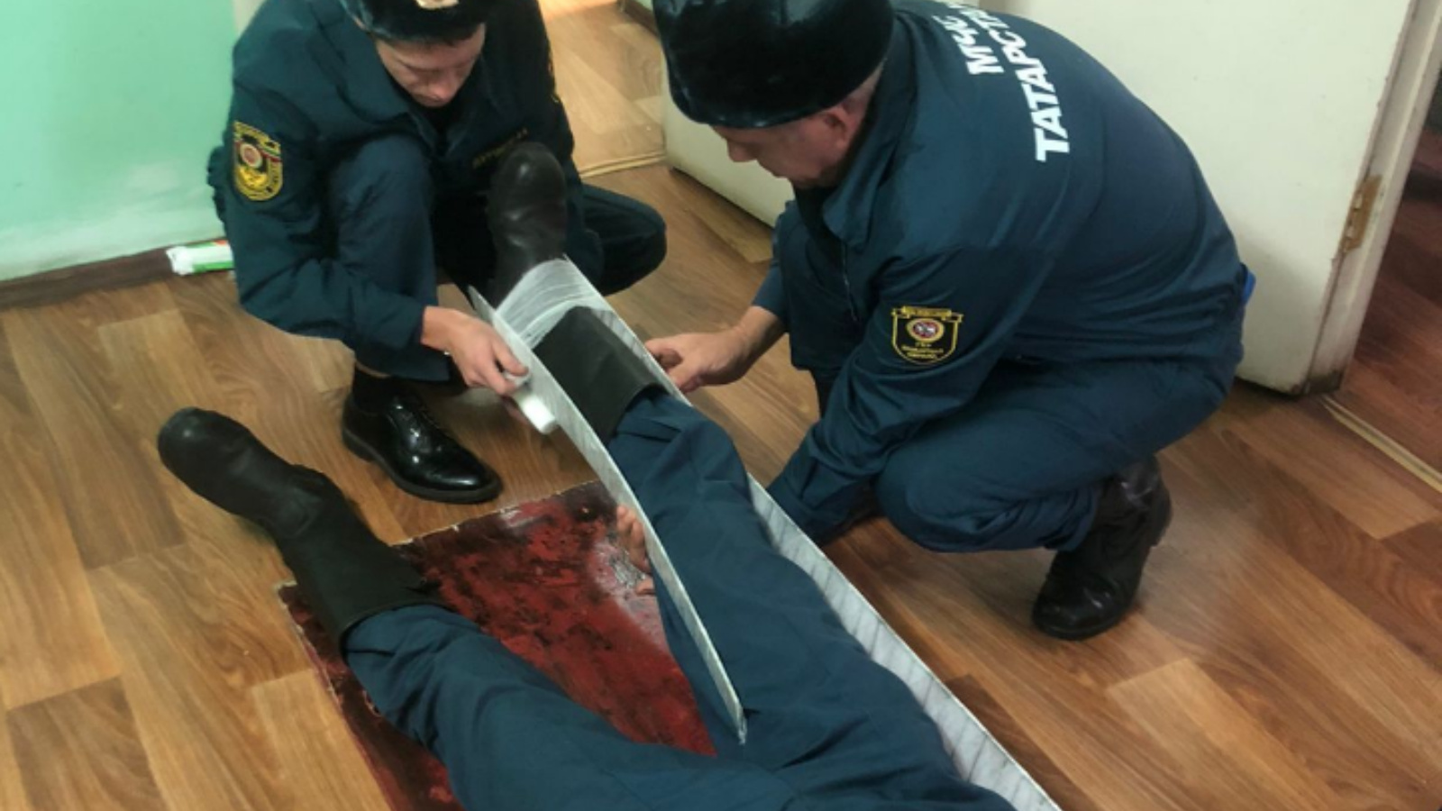 С целью отработки приемов и способов работы с оборудованием по оказанию первой медицинской помощи, а также поддержания и совершенствования общих и специальных навыков, в отдельном посту по охране села Антоновка Чистопольского отряда противопожарной службы Республики Татарстан проведено занятие по отработке норматива № 4.6 «Наложение «пострадавшему» готовой транспортной лестничной шины при закрытом переломе костей голени».