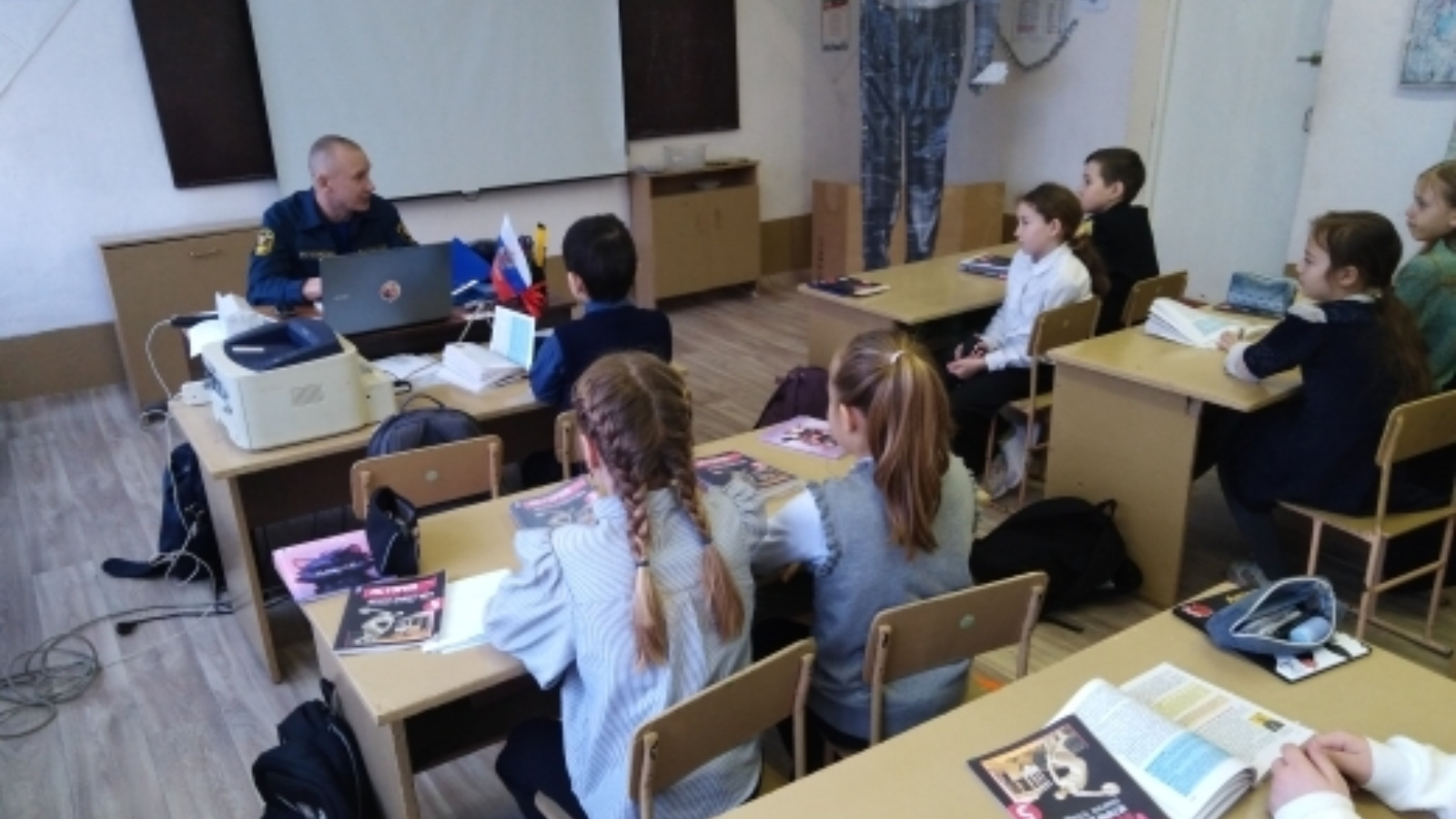 В ходе урока школьникам напомнили меры пожарной безопасности, разъяснили порядок действий в случае возникновения пожара и вручили памятки на противопожарную тематику.