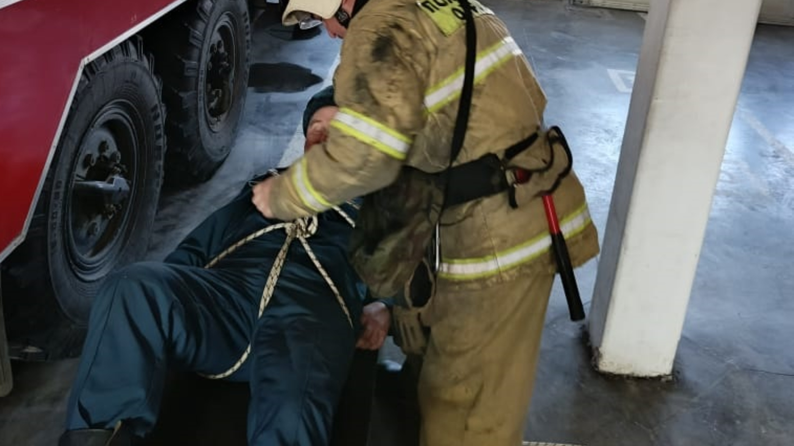 Работниками отдельного поста на территории ООО «УК «Технополис «Новая Тура» Казанского отряда противопожарной службы Республики Татарстан проведена отработка норматива по пожарно-строевой подготовке № 3.4. «Вязка двойной спасательной петли с надеванием ее на пострадавшего».