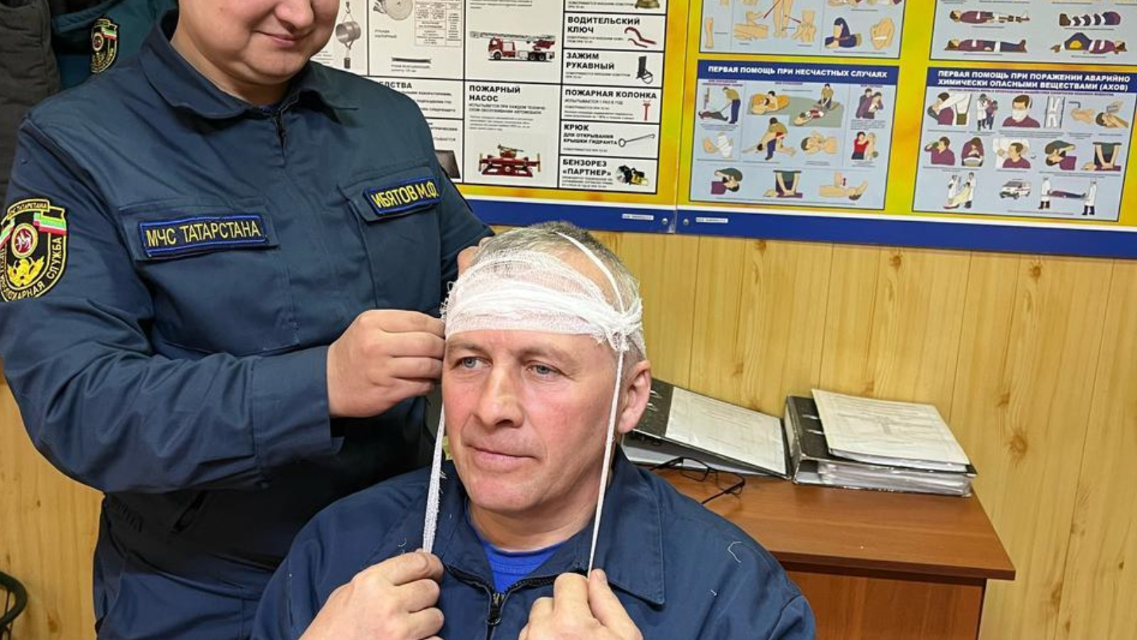 В целях отработки приемов оказания первой помощи и наложения повязок при травмах, согласно расписанию занятий по профессиональной подготовке работников, в отдельном посту по охране села Энтуганы Апастовского отряда противопожарной службы Республики Татарстан провели занятия по отработке упражнений № 4.8 «Наложение повязки на правый (левый) глаз «пострадавшего» и № 4.11 «Наложение повязки на голову (повязка-чепец) «пострадавшего»
