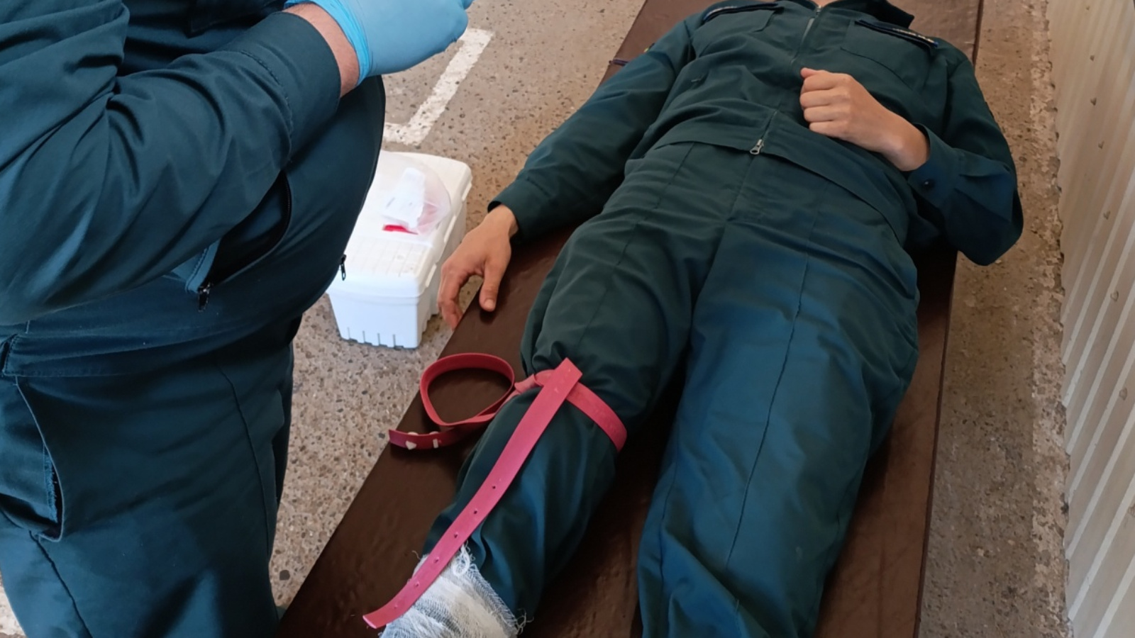 В целях совершенствования приемов и действий работников противопожарной службы Республики Татарстан при проведении аварийно-спасательных работ в отдельном посту по охране села Новые Шаши Сабинского отряда противопожарной службы Республики Татарстан дежурной сменой проведена отработка упражнения по оказанию первой помощи № 4.4 «Наложение жгута кровоостанавливающего резинового Эсмарха на бедро (плечо) «пострадавшему».