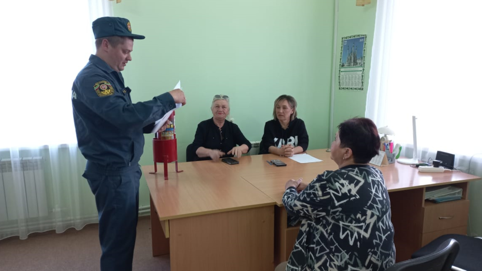 В целях профилактики пожаров в местах с массовым пребыванием людей начальником отдельного поста по охране села Шугурово Альметьевского отряда противопожарной службы Республики Татарстан Давлетшиным И.И. была проведена беседа с работниками дома культуры Санатория «Бакирово» по вопросам пожарной безопасности на данном объекте и мерам пожарной безопасности в весеннее-летний период, а также использования первичных средств пожаротушения и работы с огнетушителями.