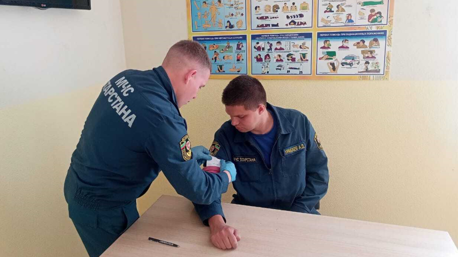 С целью повышения уровня практической подготовки личного состава по оказанию первой помощи пострадавшим при выполнении оперативно-тактических действий на пожаре работниками отдельного поста по охране села Сюкеево Апастовского отряда противопожарной службы Республики Татарстан проведена отработка упражнений по профессиональной подготовке № 4.4 «Наложение жгута кровоостанавливающего резинового Эсмарха на бедро (плечо) "пострадавшему"».