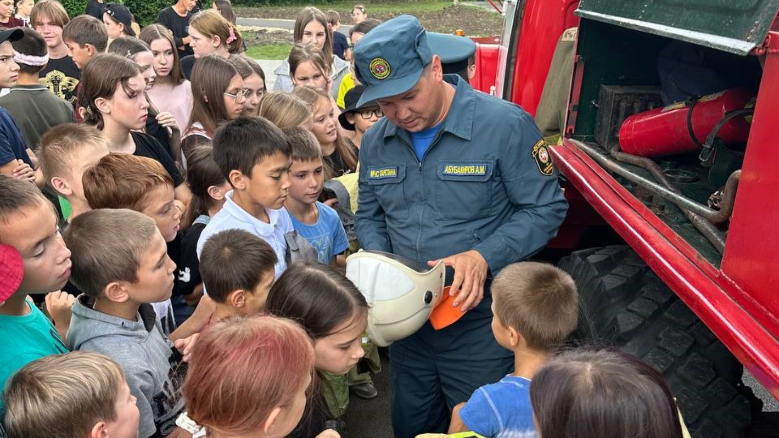 В целях ознакомления детей с требованиями пожарной безопасности, формирования навыков правильного поведения детей в случае возникновения чрезвычайных ситуаций и воспитание чувства уважения к профессии пожарного начальником отдельного поста по охране с. Среднее Балтаево Апастовского отряда противопожарной службы Республики Татарстан Абубакировым А.М. совместно с со старшим дознавателем отдела надзорной деятельности и профилактической работы по Апастовскому и Кайбицкому районам Шафигуллиным И.Х. в Детском санаторно-оздоровительном лагере «Свияга+» проведено тематическое занятие по пропаганде мер пожарной безопасности с показом пожарной техники и пожарного оборудования.