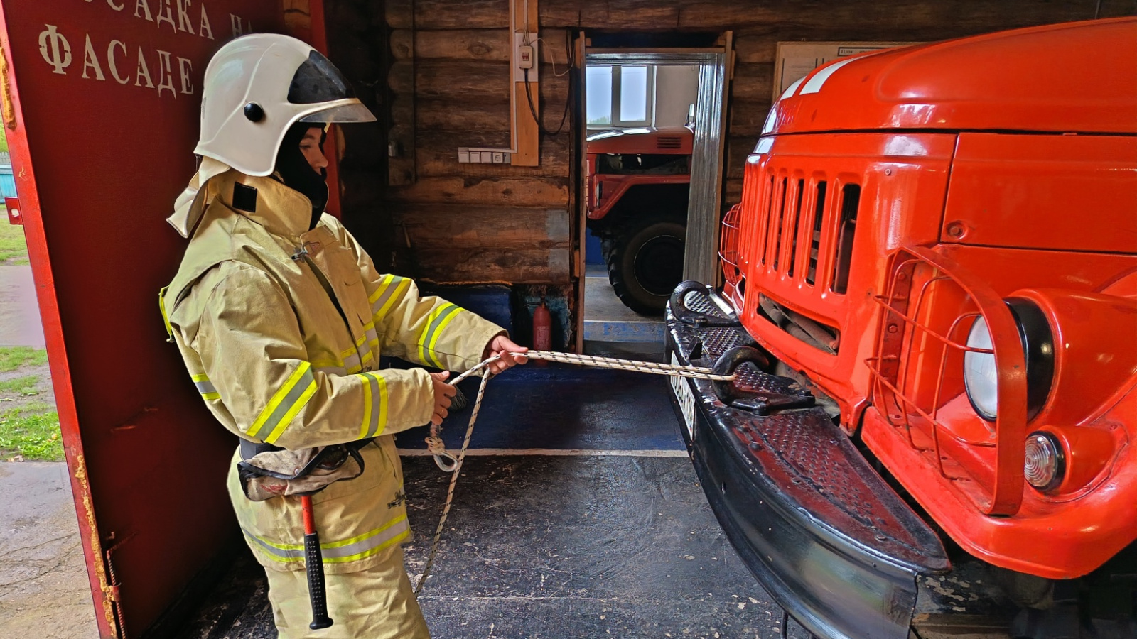 С целью совершенствования навыков, используемых в условиях оперативно-тактических действий на пожаре, отработки приемов использования штатного пожарного и аварийно-спасательного оборудования в отдельном посту по охране села села Мамыково Нижнекамского отряда противопожарной службы Республики Татарстан с работниками отдельного поста отработан норматив №1.5 «Подготовка к самоспасанию с помощью веревки пожарной спасательной и карабина».