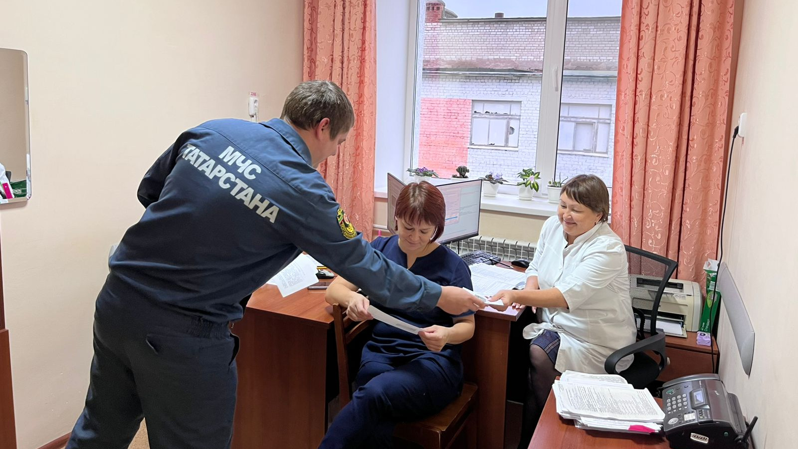 Работники отдельного поста по охране села Шугурово Альметьевского отряда противопожарной службы провели профилактическую беседу с персоналом Шугуровской участковой больницы ГАУЗ РТ «Лениногорская ЦРБ».