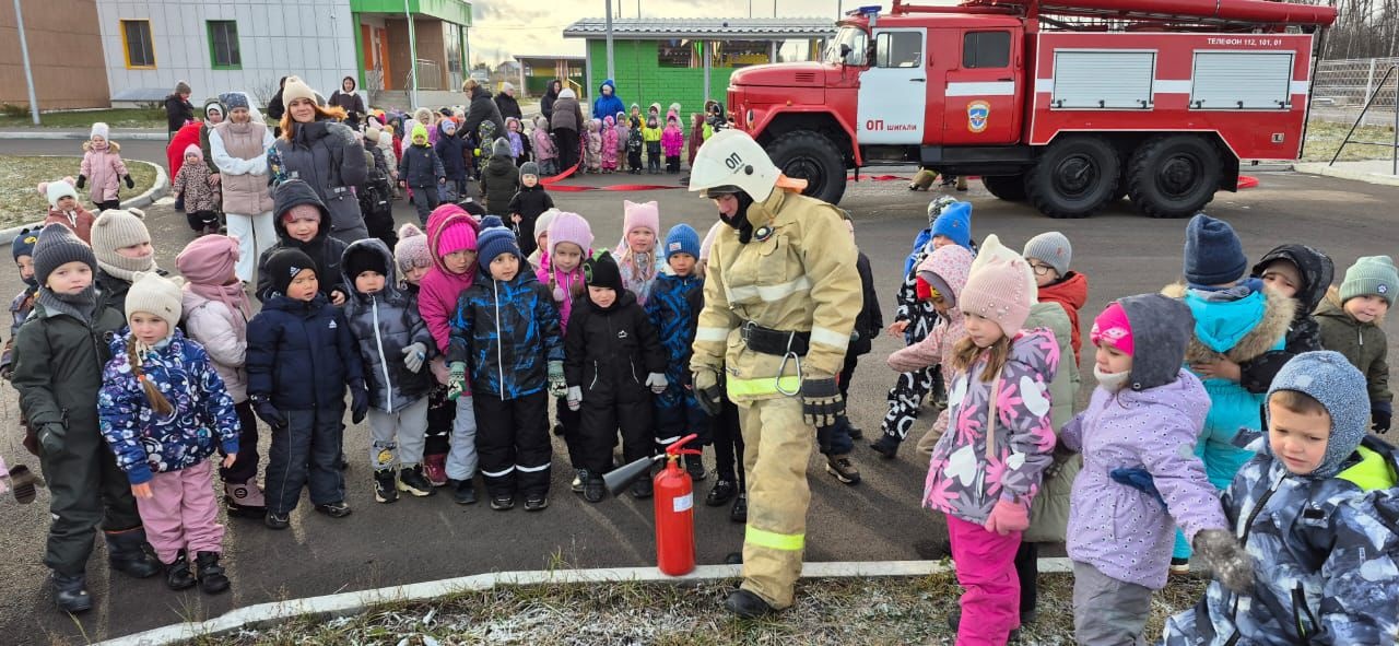 Работники отдельного поста села Шигали Казанского отряда противопожарной службы провели обучающее занятие в МБДОУ "Семиозерский детский сад "Балачак". Детям показали пожарную технику и продемонстрировали правила пользования первичными средствами пожаротушения. Малыши смогли не только увидеть специальное оборудование и наглядное использование огнетушителя, но и узнать о их назначении от самих пожарных.