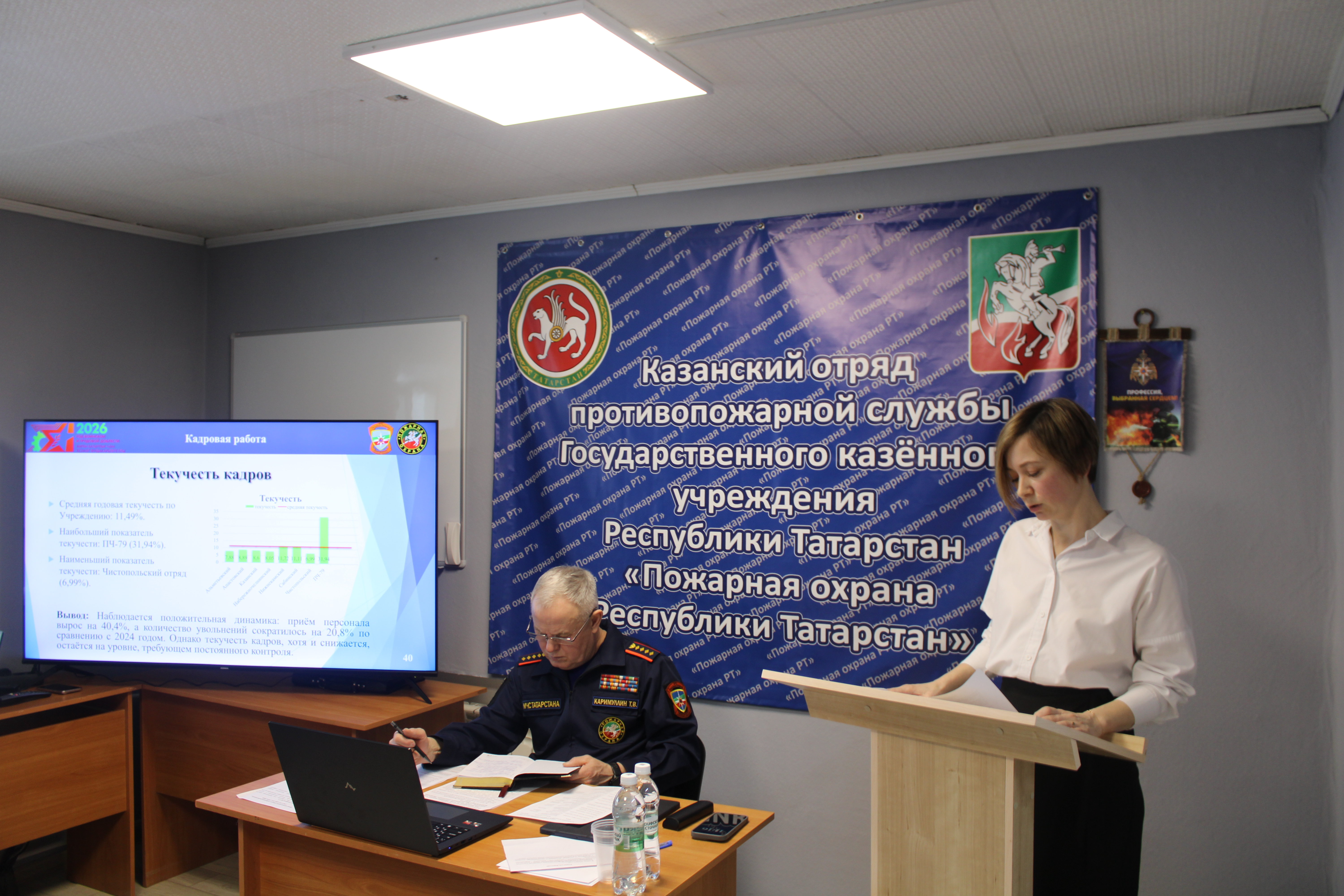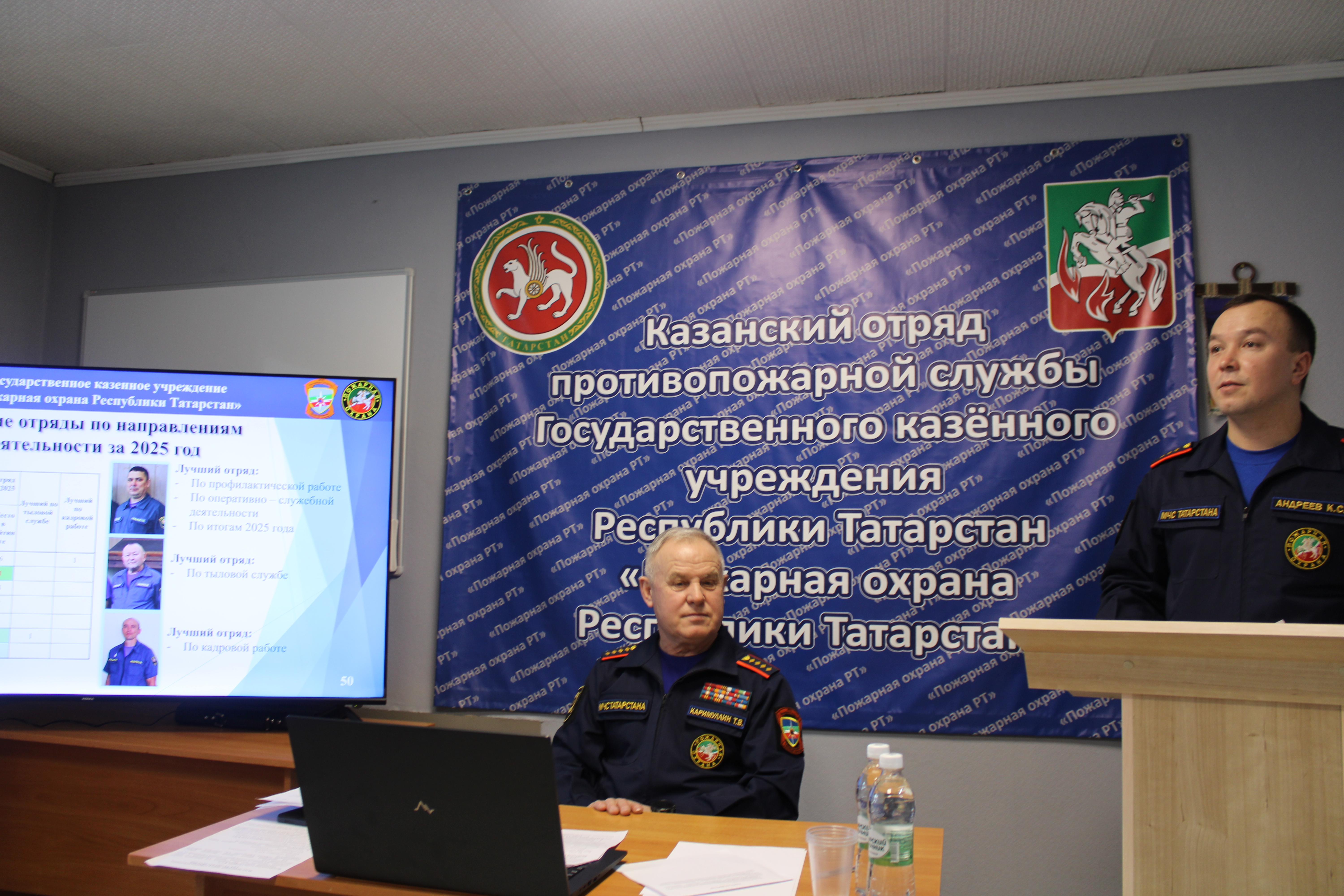 29 января в продолжение Совместной коллегии Главного управления МЧС России по Республике Татарстан и МЧС Республики Татарстан, посвящённой итогам деятельности гражданской обороны и территориальной подсистемы предупреждения и ликвидации чрезвычайных ситуаций Республики Татарстан, состоялось итоговое совещание с руководящим составом аппарата управления Государственного казенного учреждения «Пожарная охрана Республики Татарстан» и руководителями отрядов противопожарной службы.