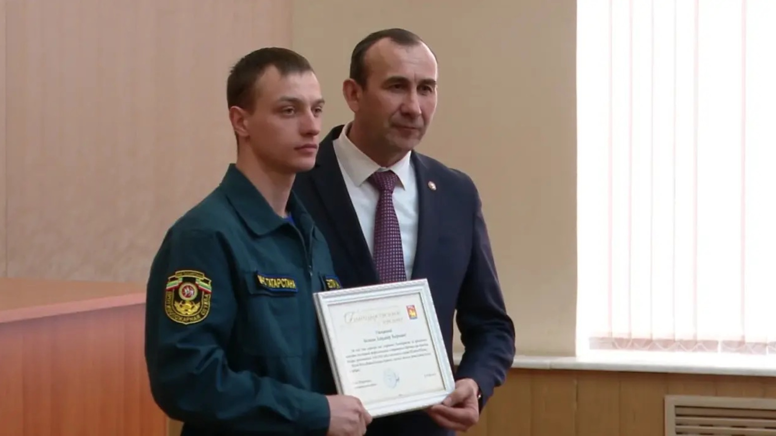 Глава Тукаевского муниципального района выразил искреннюю признательность и вручил благодарственные письма начальнику отдельного поста по охране с. Тлянче-Тамак Александру Беспалову и пожарному Айрату Калимуллину. Основанием для награды стал поступок, совершенный ими 16 февраля в селе Тлянче-Тамак. В тот день, оказавшись лицом к лицу с огненной стихией, Александр и Айрат действовали четко, решительно и профессионально. Благодаря их оперативности и грамотным действиям удалось избежать трагедии — жизнь человека была спасена.